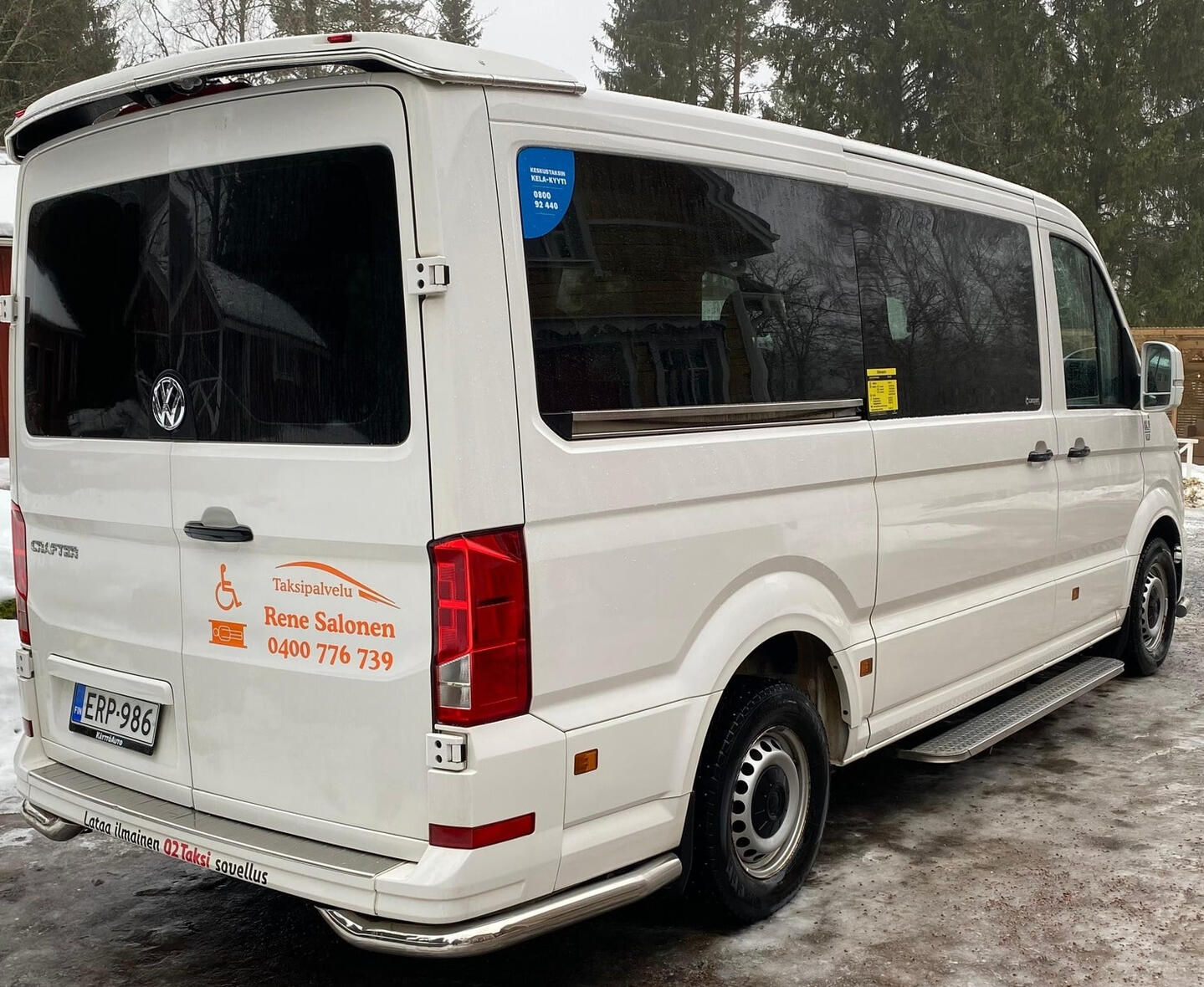Moderni tilataksi soveltuu monenlaisiin tarpeisiin. Autossa on paikkoja 1+8, joten isotkin porukat mahtuvat kyytiin.Kuljen turvallisesti niin pyörätuoliasiakkaiden kuin liikuntarajoitteisten kanssa Karviassa ja lähialueilla. Auto soveltuu ryhmäkuljetuksiin ja runsaampien matkatavaroiden kuljetukseen.